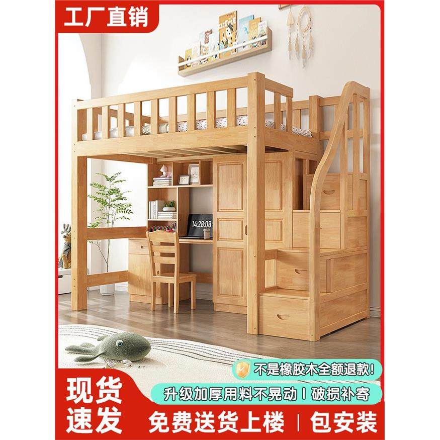 全实木高架床儿童上下铺带书桌上床下桌多功能组合成人宿舍高低床