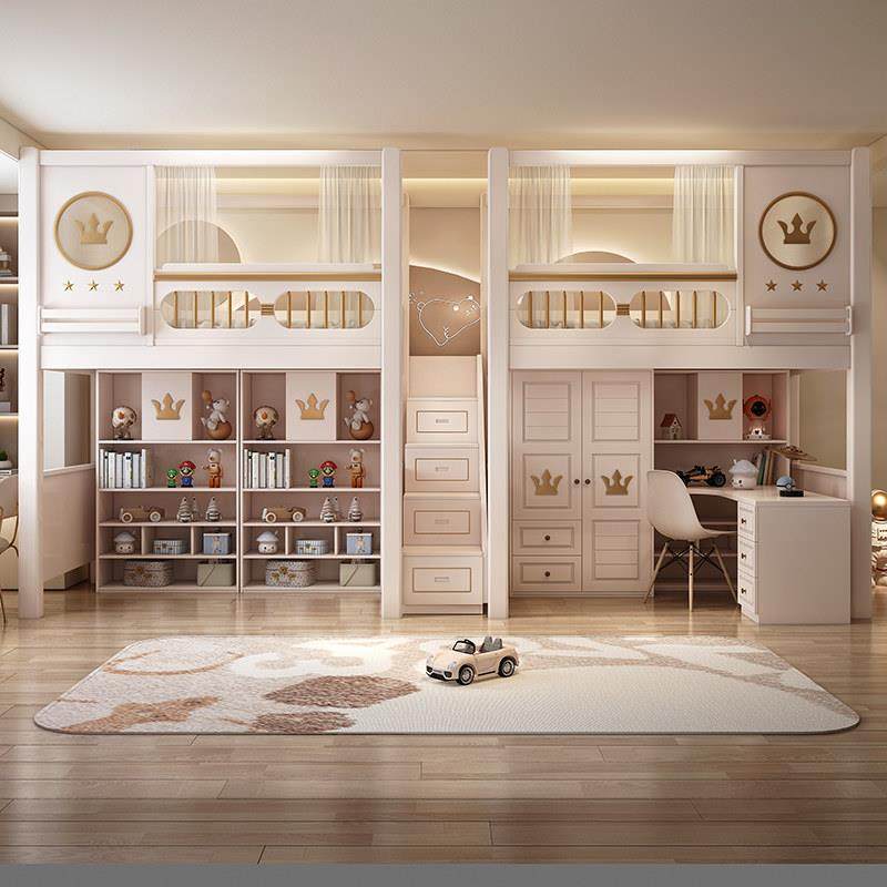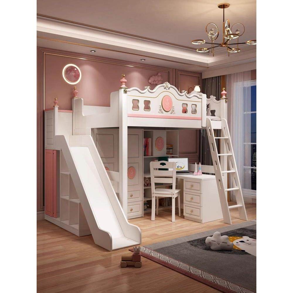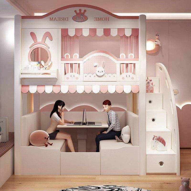儿童床女孩上床下桌组合床书桌衣柜一体省空间上下铺双层床高架床