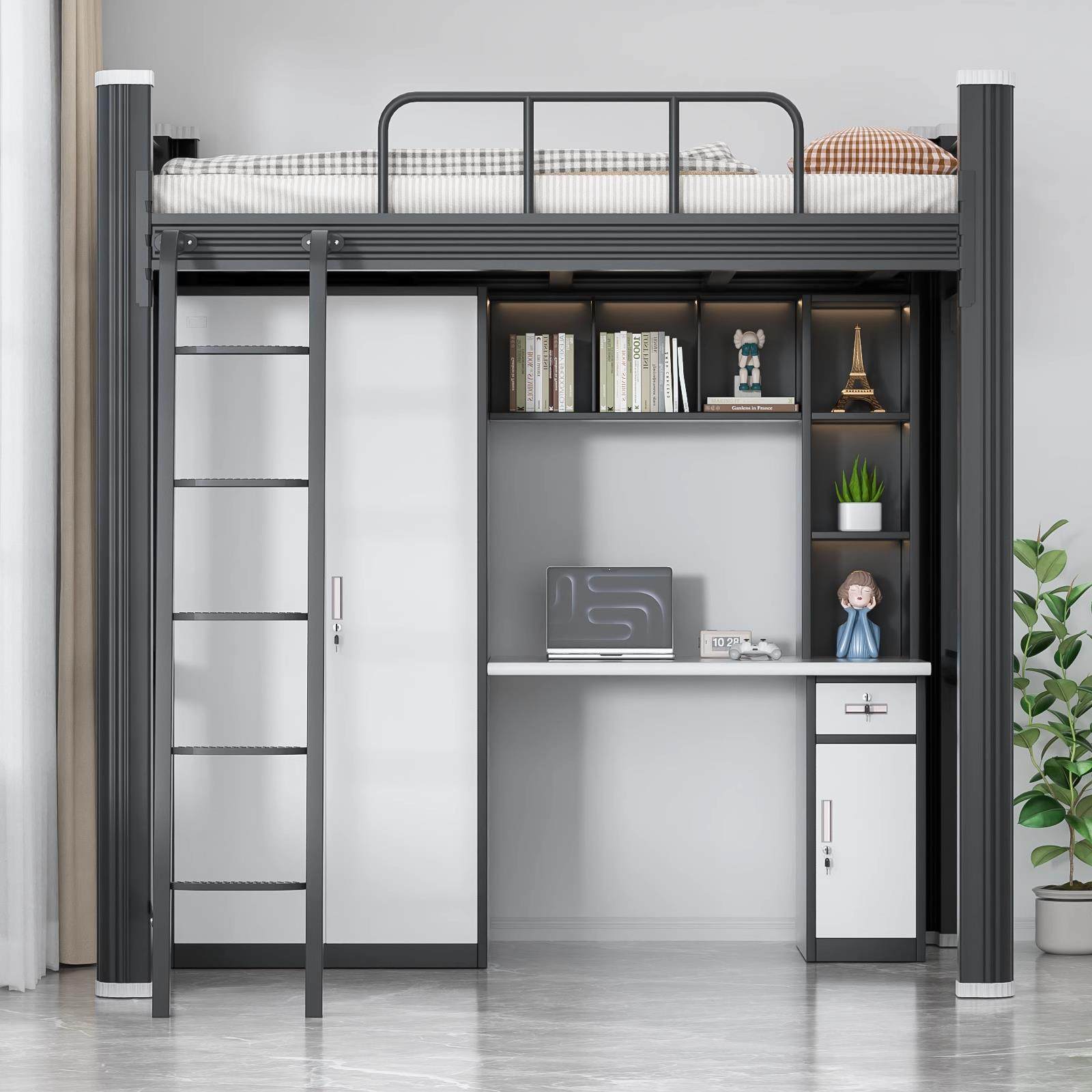 大学生宿舍上床下桌组合床员工双层铁艺高架床头柜一体小户型公寓