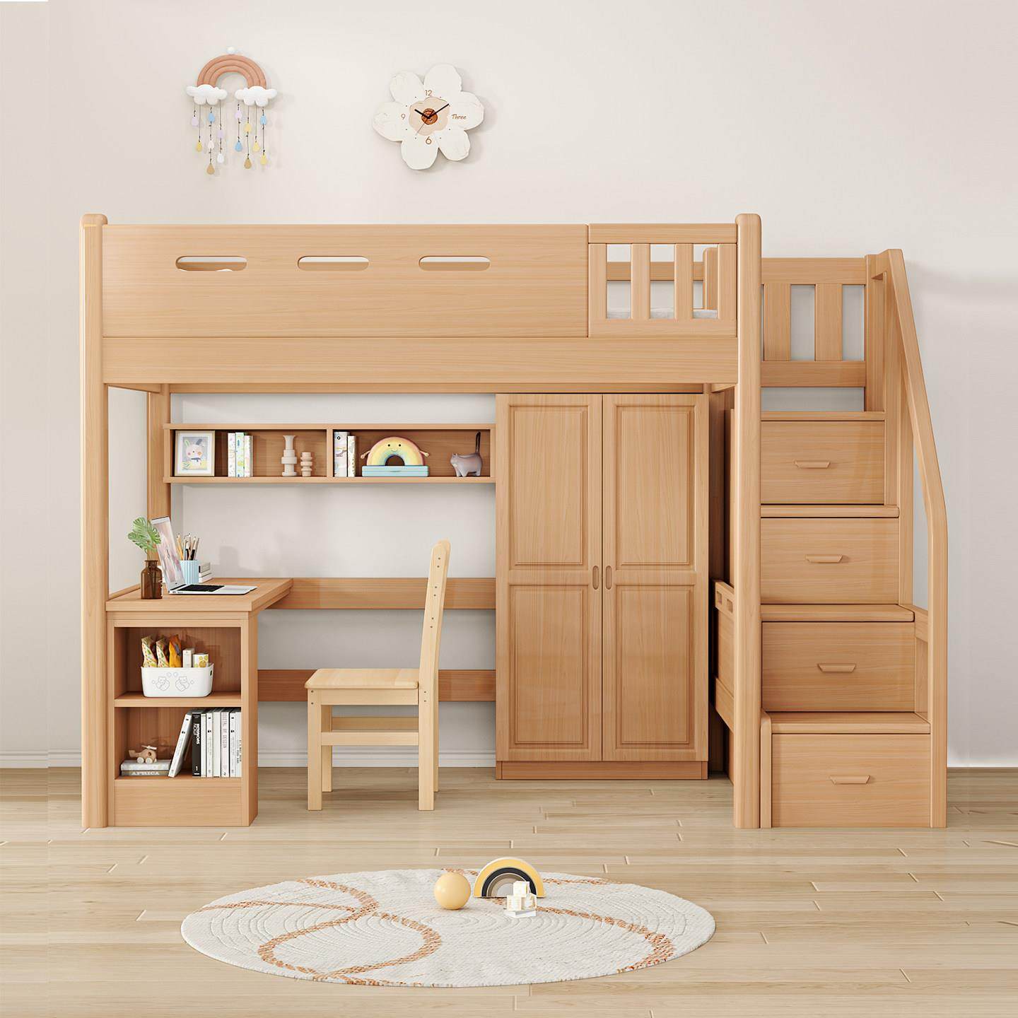 木兜家具全能儿童床上床下桌组合床男孩床实木原木风女孩床高低床