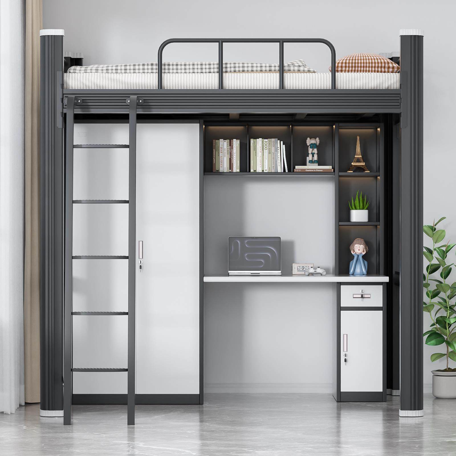 上床下桌组合床大学生宿舍员工公寓家用上床下空单上层铁艺高架床