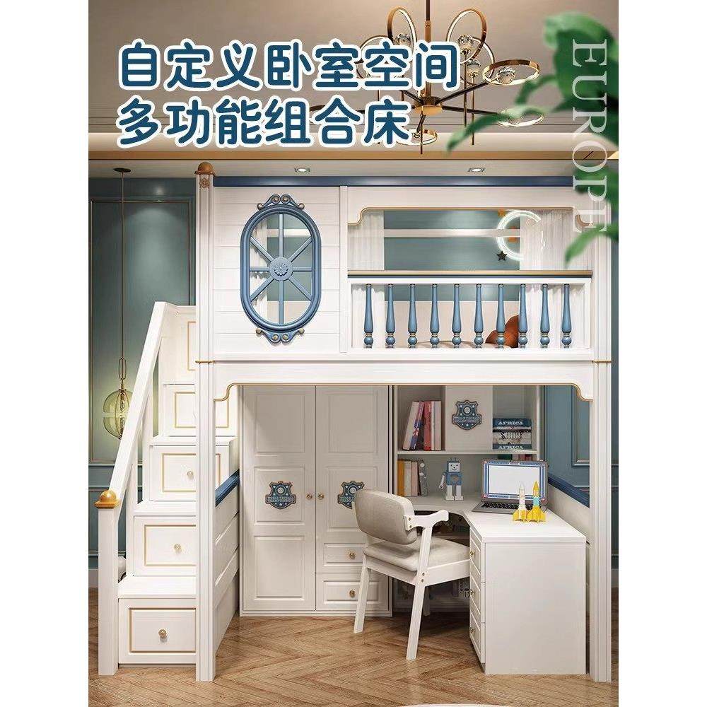 上床下桌高低床多功能组合床家用全实木儿童床书桌衣柜一体高架床