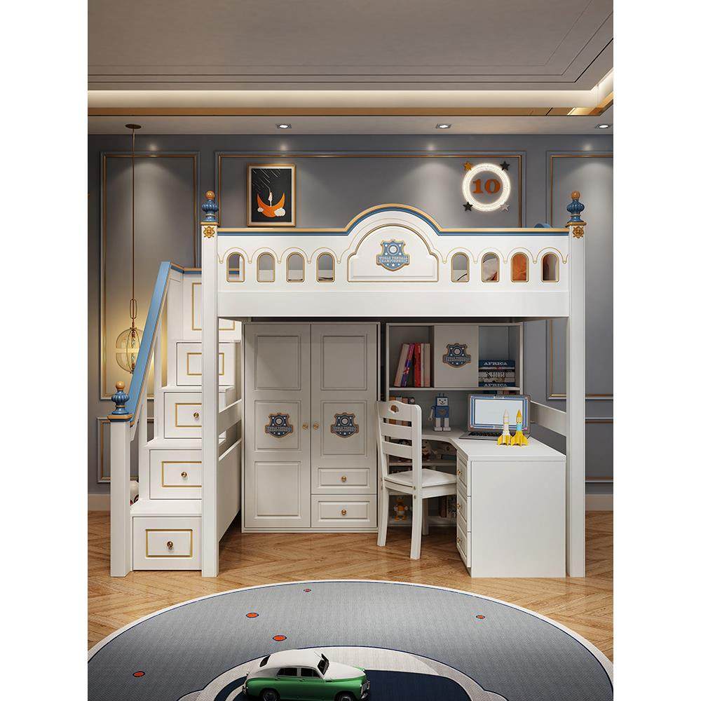 上床下桌组合床带衣柜书桌一体男孩家用多功能儿童高低两层双层床