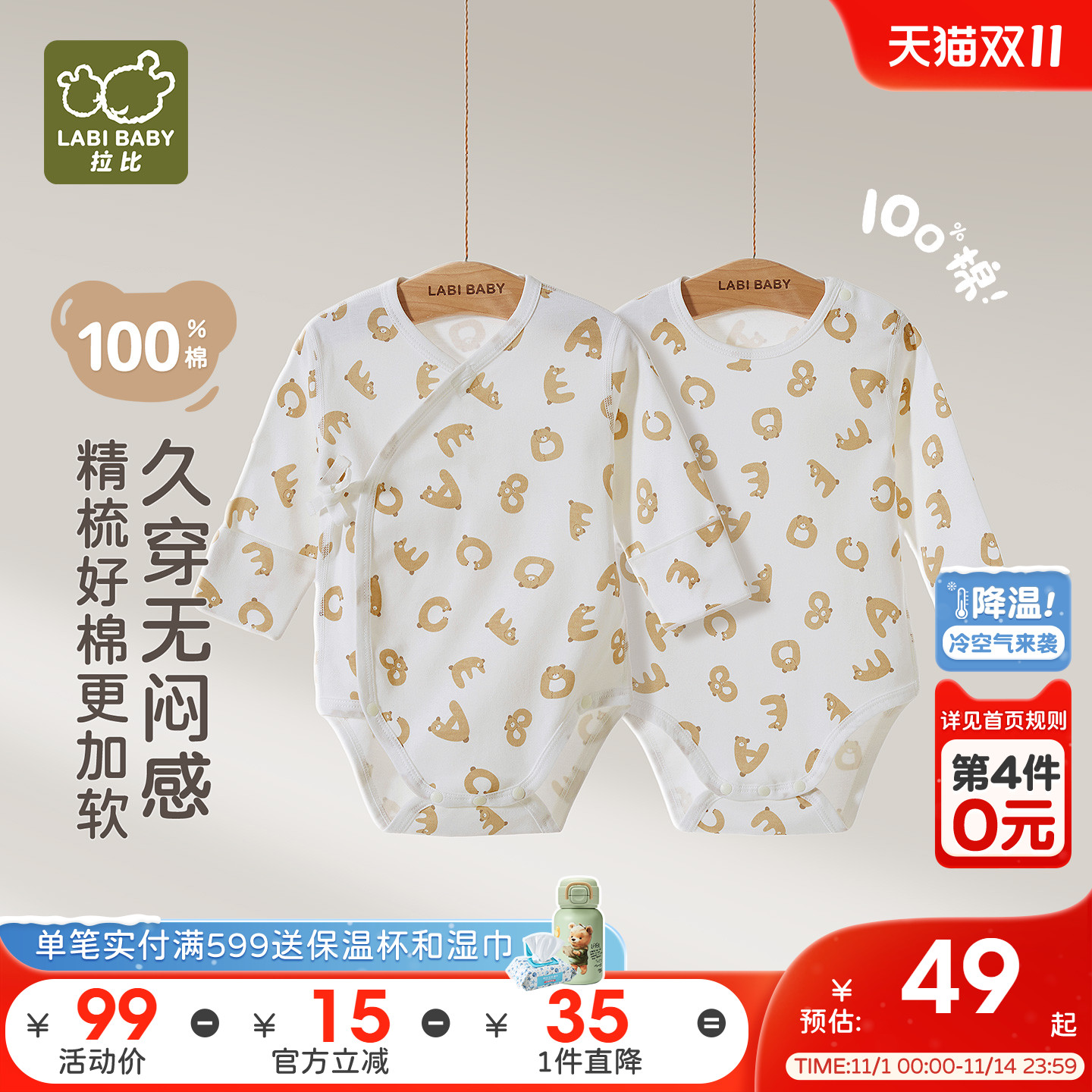 拉比婴儿连体衣宝宝爬爬服新生儿包屁衣四季绑带哈衣和尚服2件装