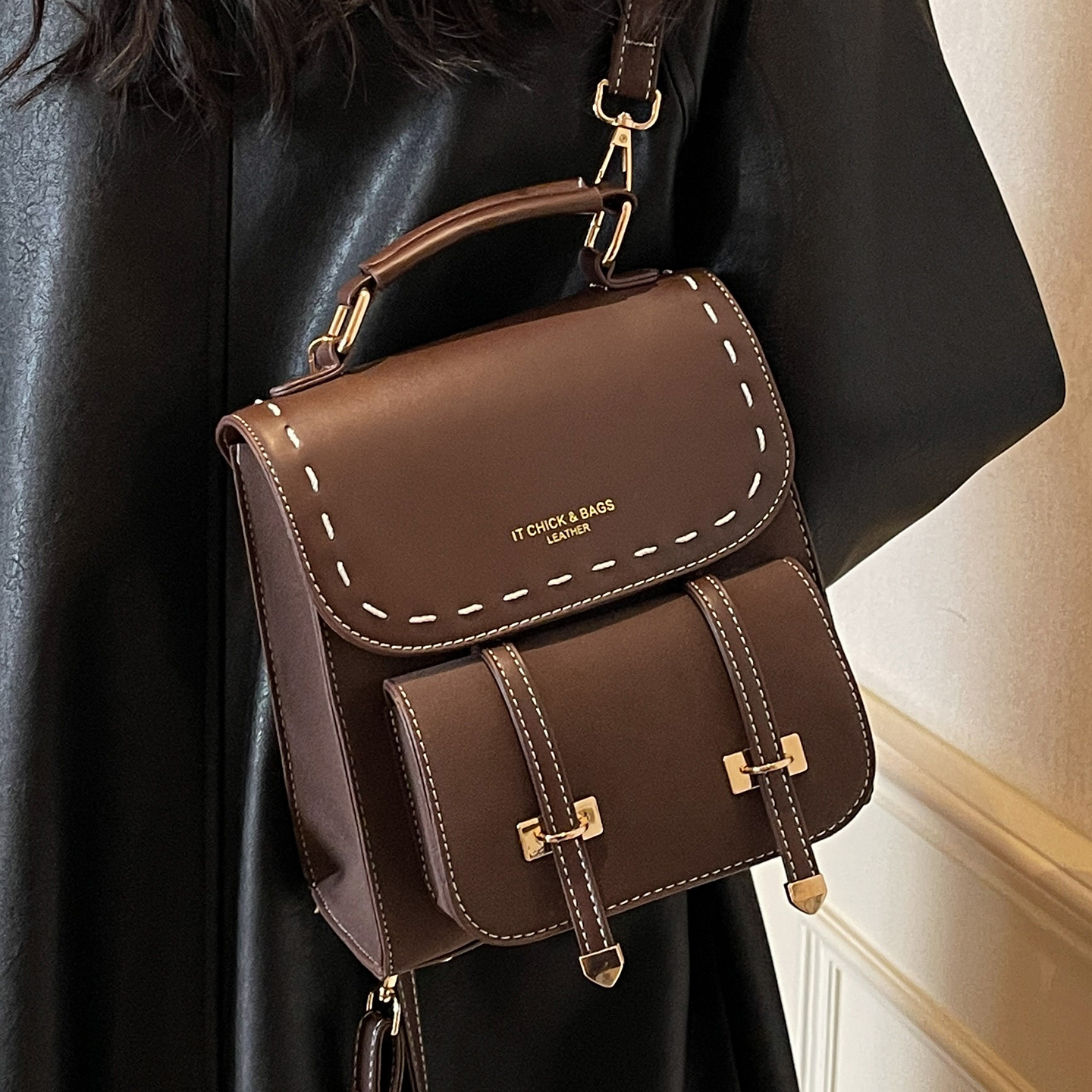 2023新款英伦复古双肩包包女手提单肩学生上课通勤多功能斜挎背包