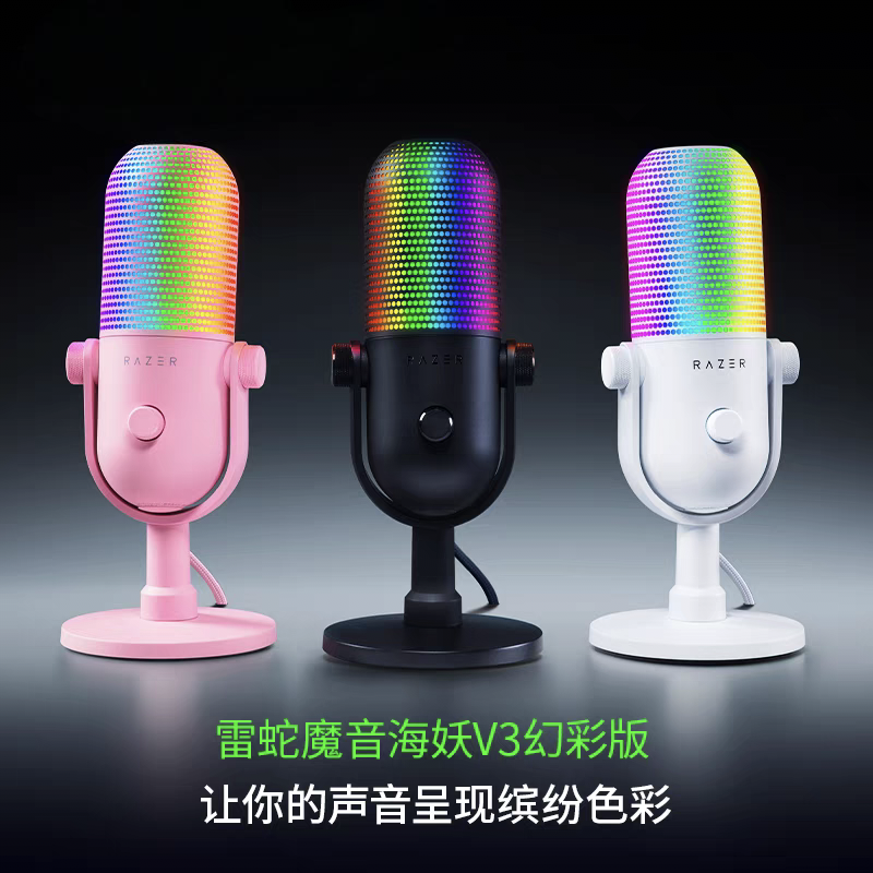 Razer雷蛇魔音海妖V3幻彩版麦克风电脑话筒直播电脑游戏录音USB