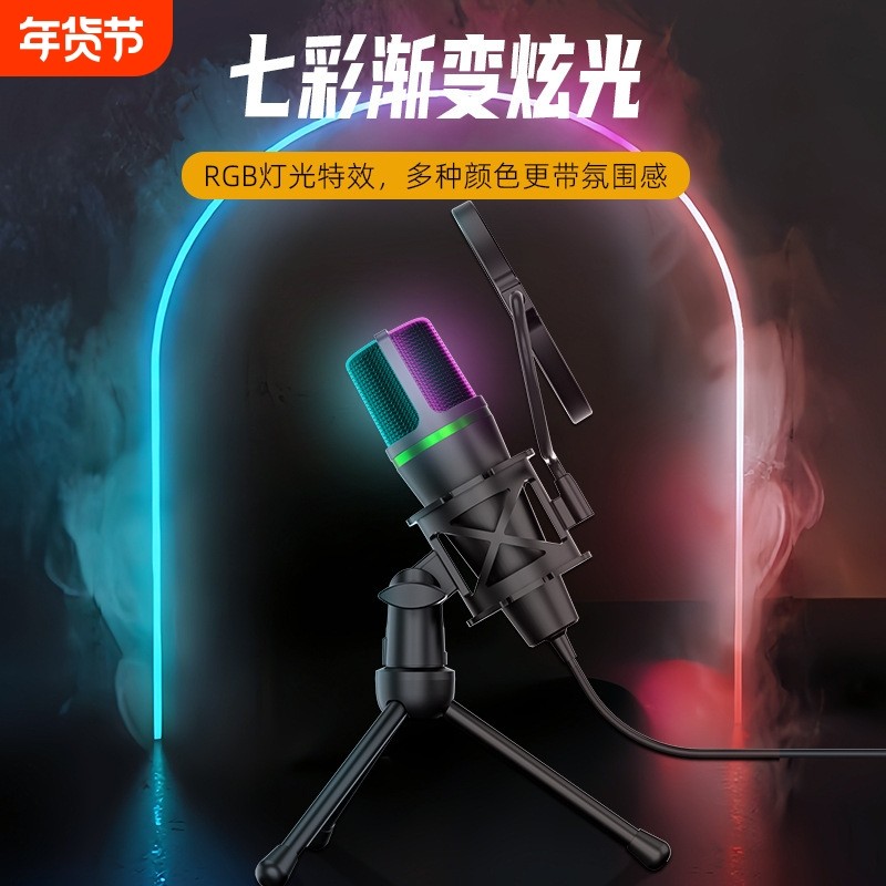新品RGB电竞K歌音响直播电容麦克风 USB手机录音电脑话筒麦克风