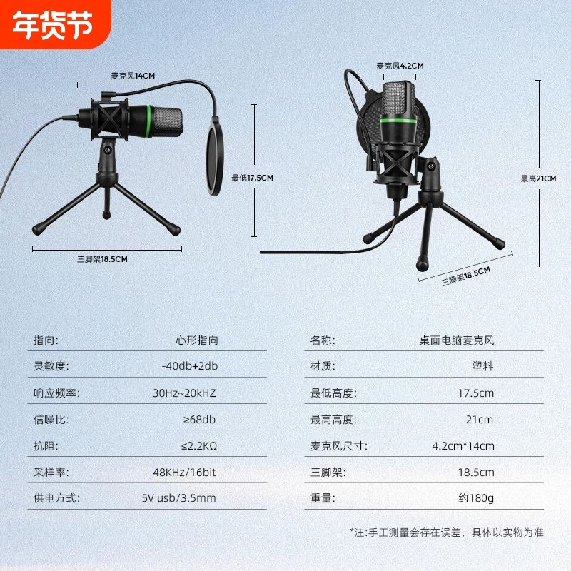 麦克风电脑台式话筒游戏语音笔记本USB降噪主播直播家用会议录音