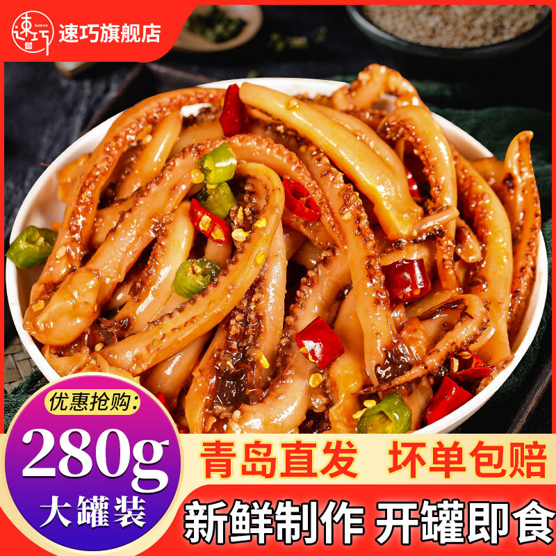 青岛麻辣鱿鱼须即食罐装熟食捞汁小海鲜鱿鱼头章鱼香辣八爪鱼特产