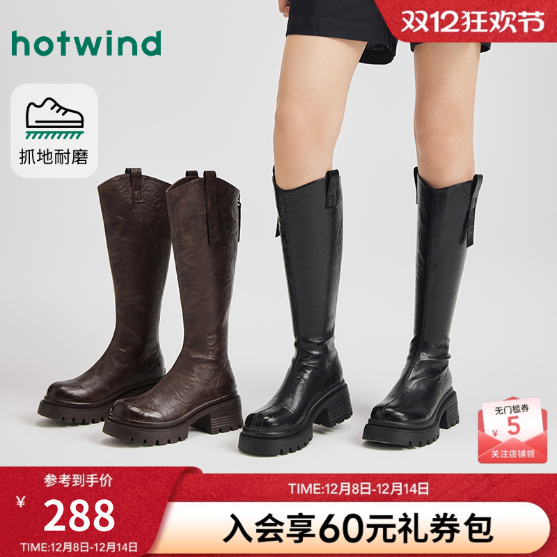 热风厚底骑士靴女2025年冬季新款英伦风黑色长靴增高百搭粗跟靴子