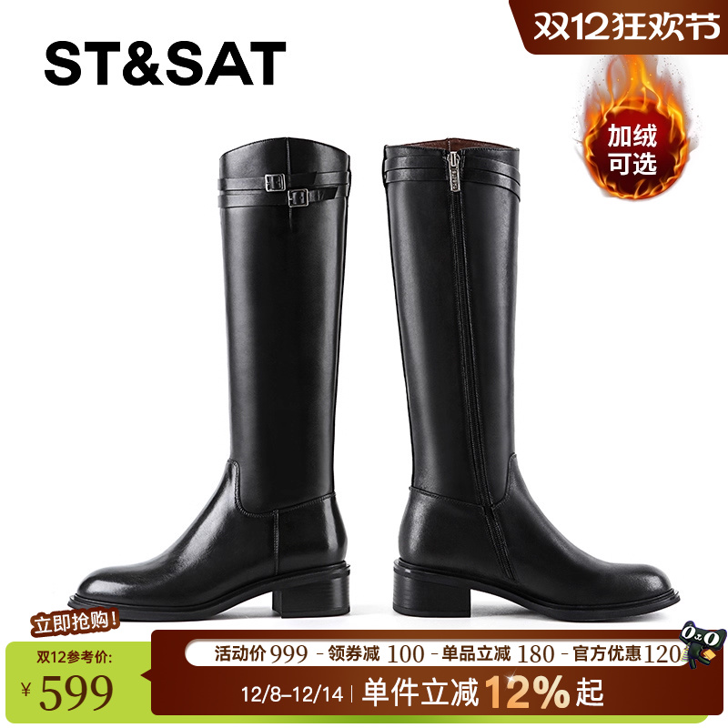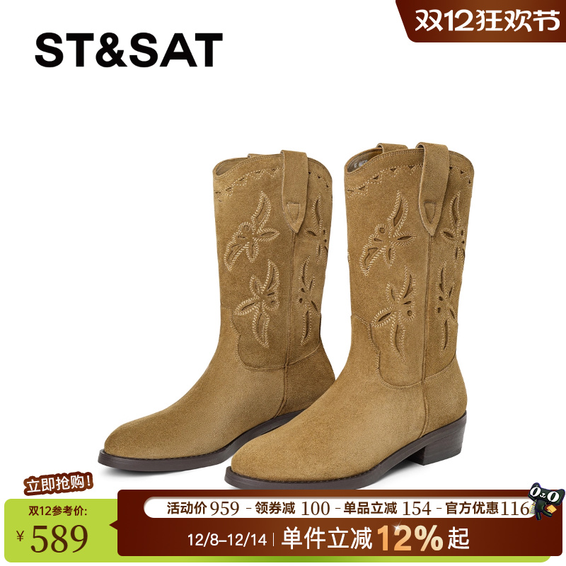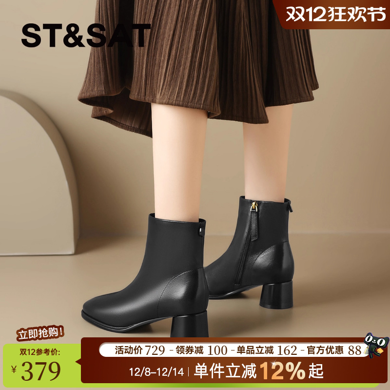 St&Sat/星期六高跟鞋女鞋秋冬款靴子冬季短靴25新款加绒粗跟靴子