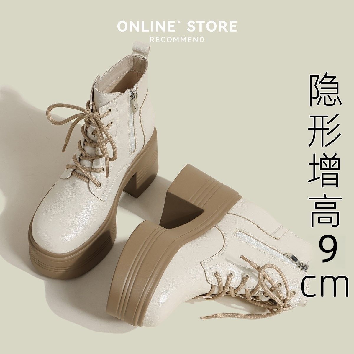 真皮厚底短靴女2025秋冬新款小个子超高跟英伦风马丁靴女粗跟靴子