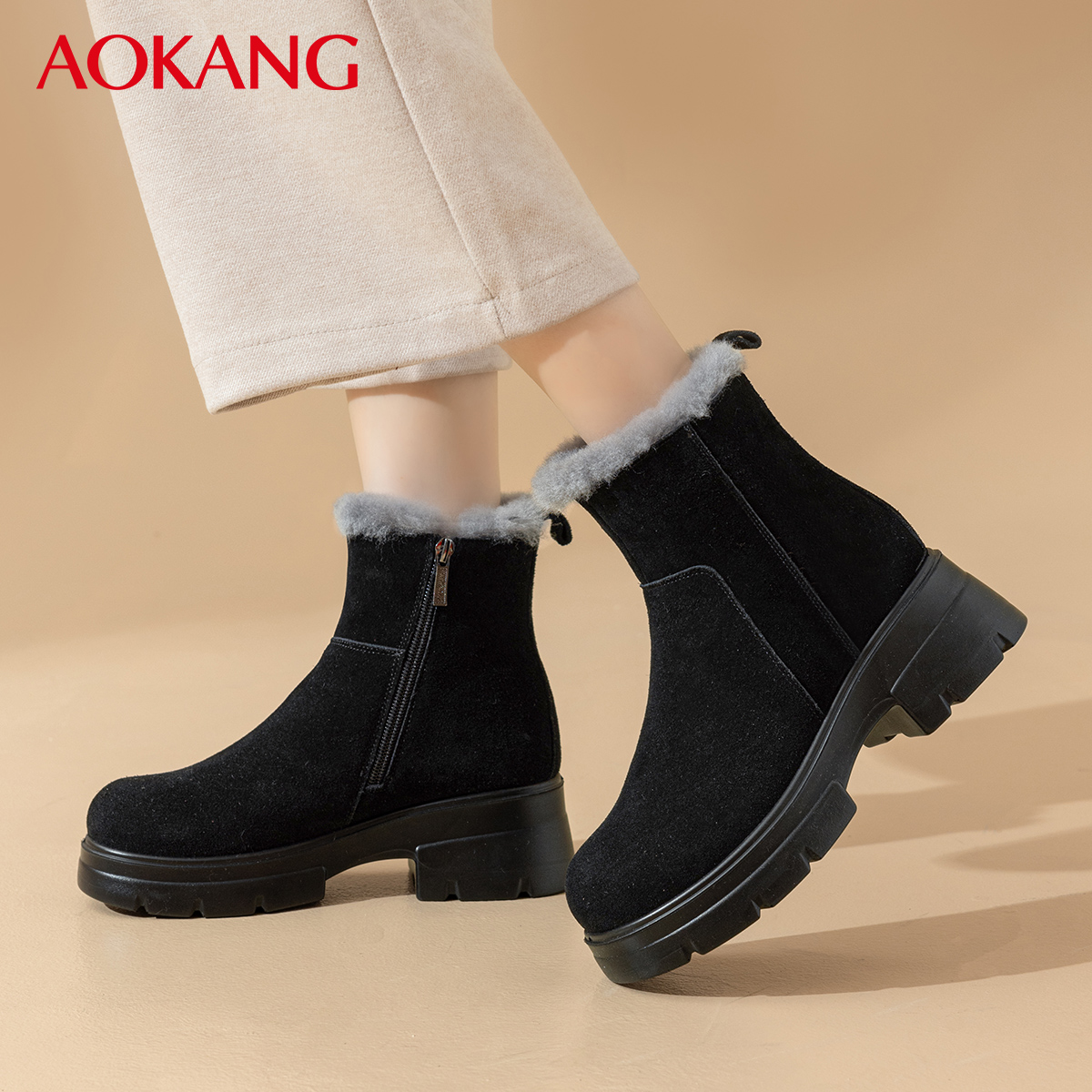 奥康女靴2025年冬季新款防滑保暖雪地靴加绒中年妈妈棉鞋粗跟靴子