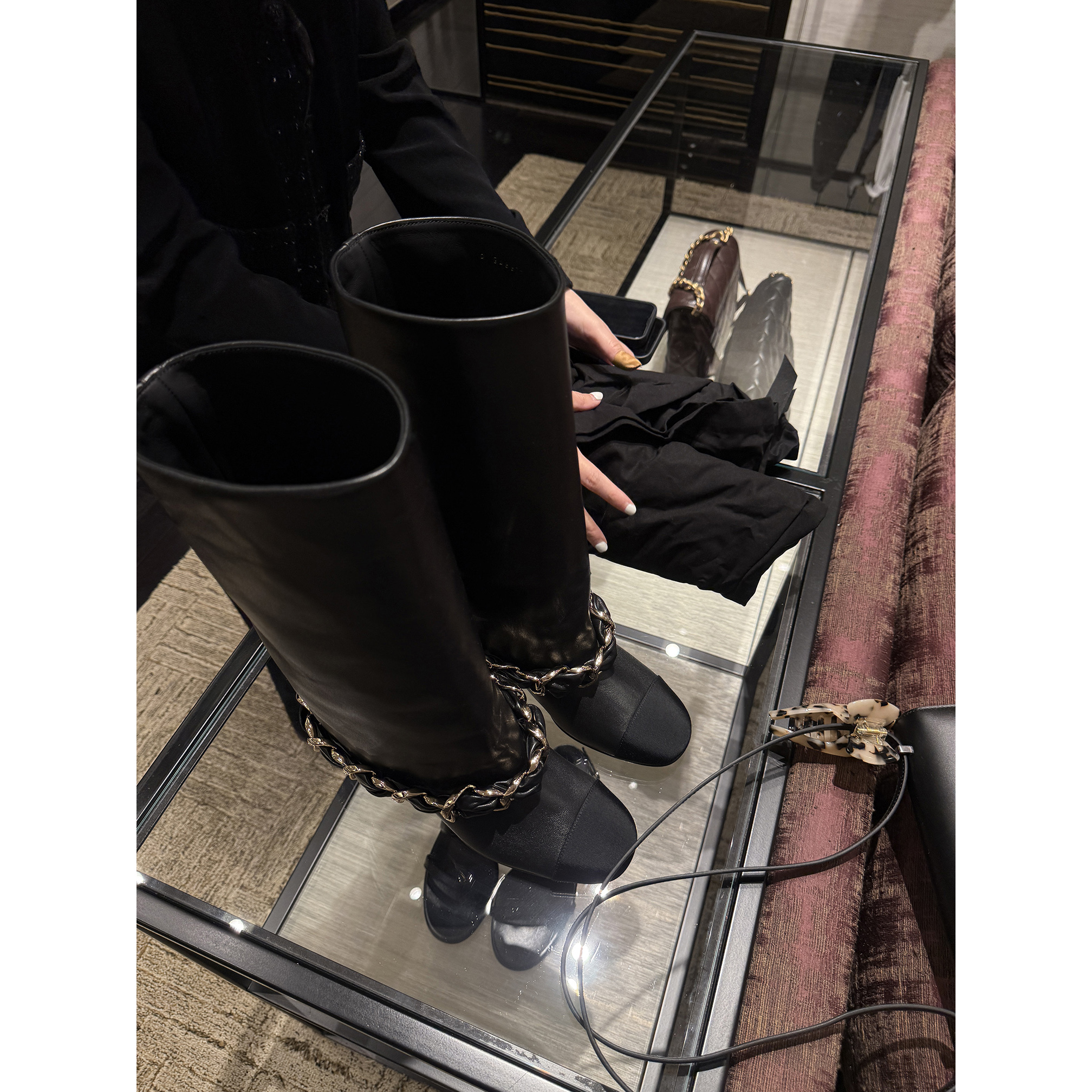 大东黑色长靴女2025新款秋冬高跟长筒靴粗跟靴子女款瘦瘦靴高筒靴