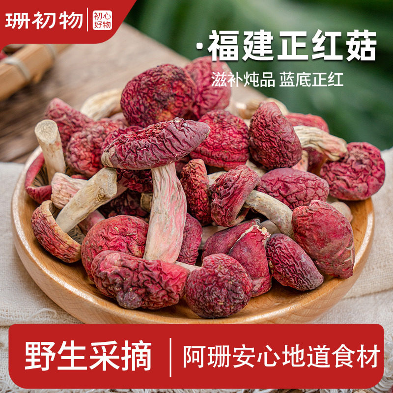 珊初物|福建野生小红菇正宗蓝底红蘑菇非特级干货月子菇煲汤500g