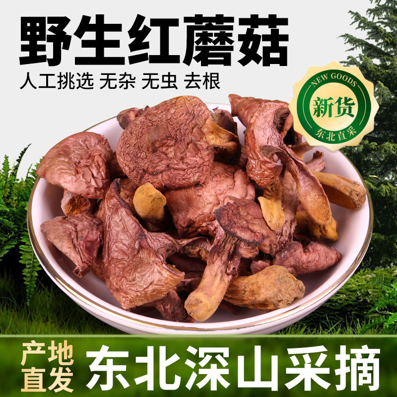 新货东北特产红蘑菇野生红菇长白山松树伞干货鸡血蘑菇肉蘑红松蘑