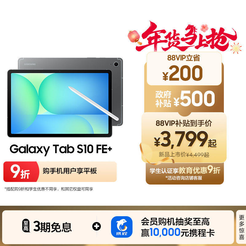 【新品享3期免息】Samsung/三星 Tab S10 FE+ 新品上市2025新款学生学习追剧办公网课平板电脑