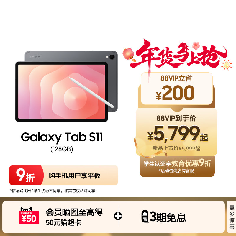 【新品享3期免息】Samsung/三星 Galaxy Tab S11 大屏智能追剧游戏学习网课办公2025新款平板电脑