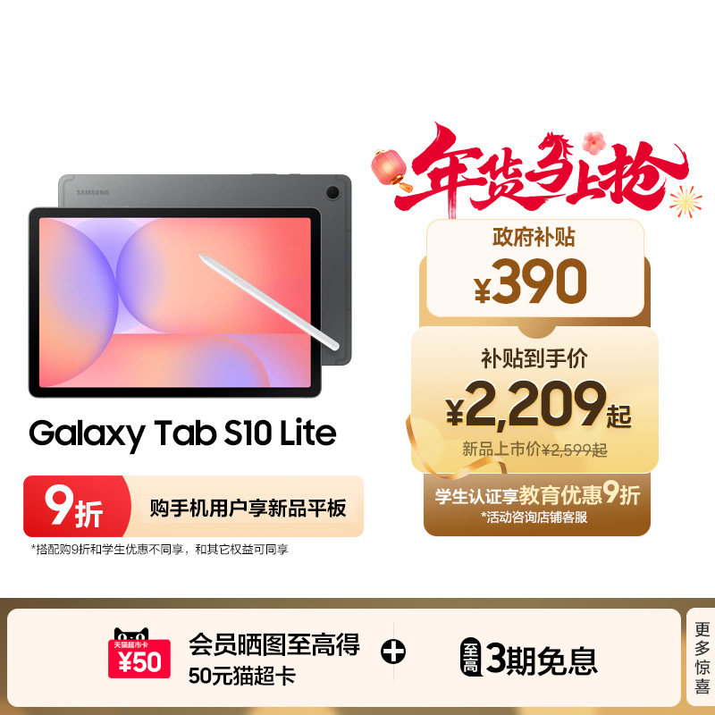 【新品享3期免息】Samsung/三星 Galaxy Tab S10 Lite 学生学习娱乐轻薄追剧网课2025年新款平板电脑