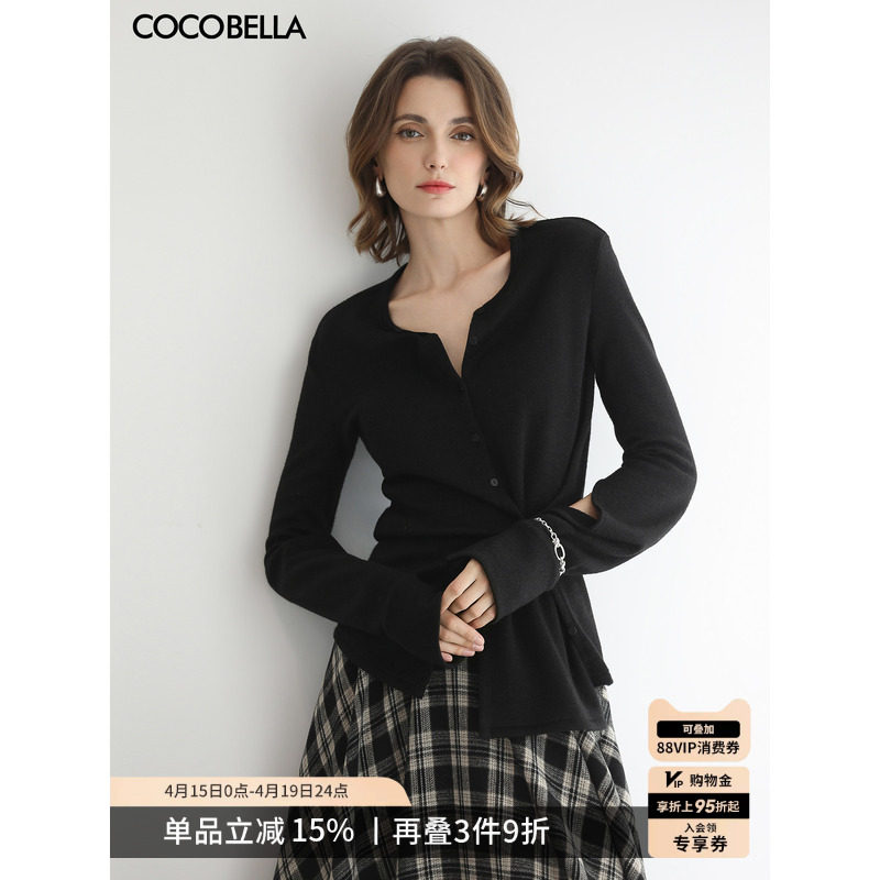 COCOBELLA多穿法不规则捏褶毛针织衫女黑色内搭打底上衣MZ3302-5