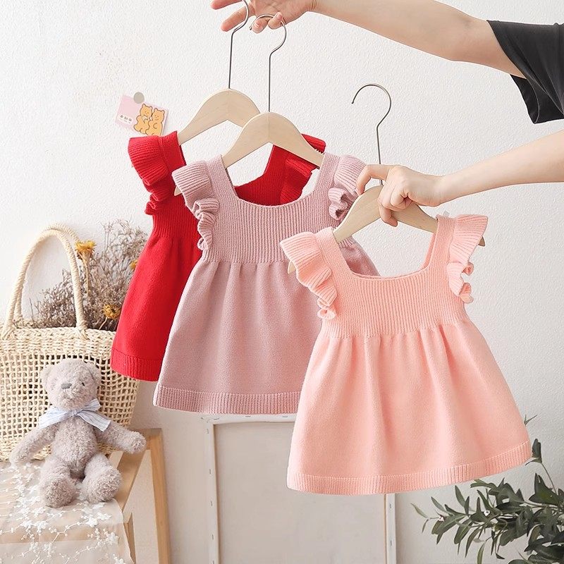 小童宝宝春秋季吊带毛衣裙女童韩版飞袖针织背心婴儿公主娃娃裙衫