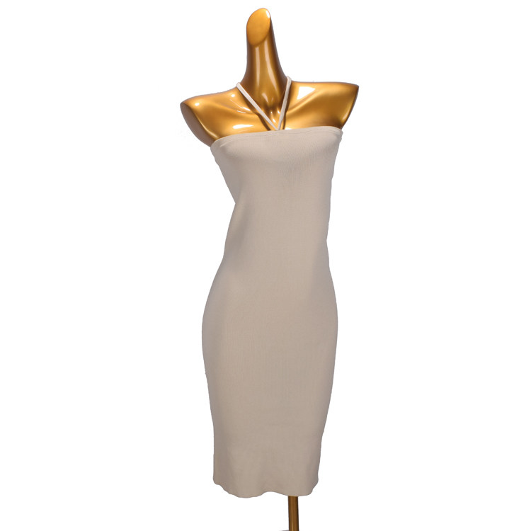 夏季新款韩版绑带挂脖式针织吊带裙女装时尚中长款修身性感连衣裙