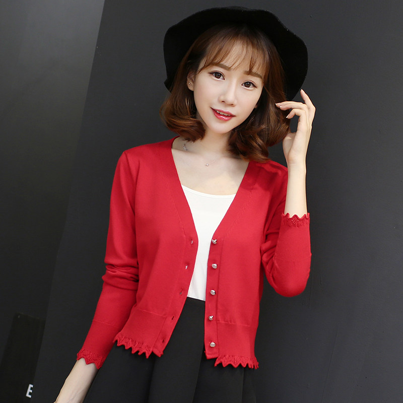 配吊带裙的小披肩韩版针织衫女开衫V领长袖短款木耳袖修身毛衣薄
