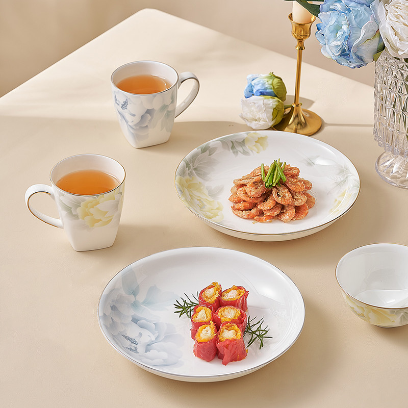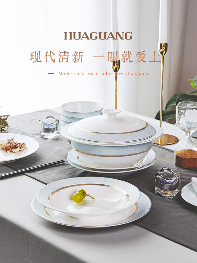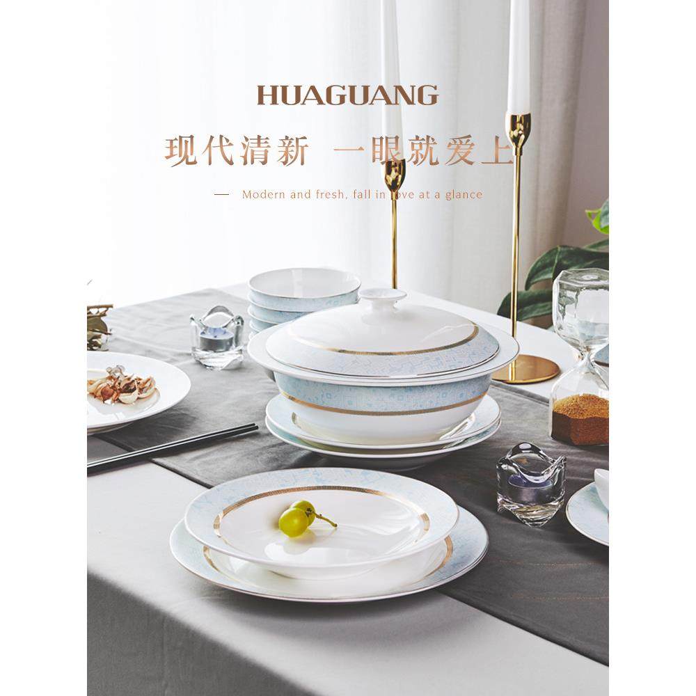 华光国瓷骨瓷碗碟餐具套装家用轻奢欧式乔迁婚庆餐具礼盒圣托里尼