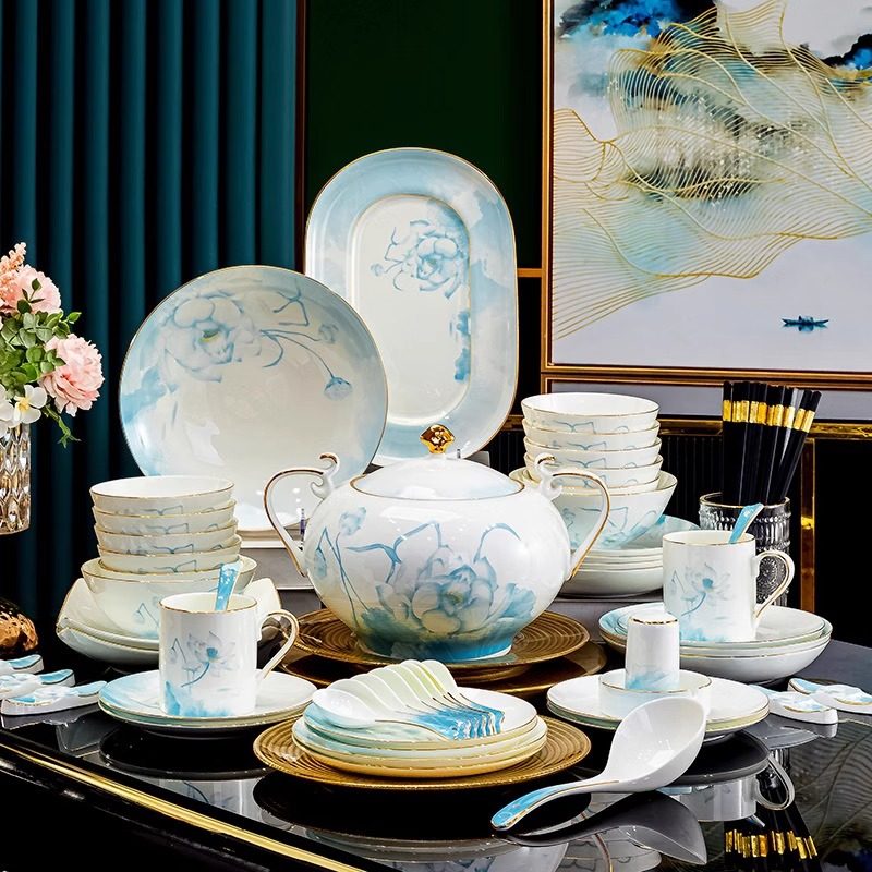 景德镇高档陶瓷骨瓷碗碟餐具套装碗盘家用乔迁中式送礼轻奢可定制