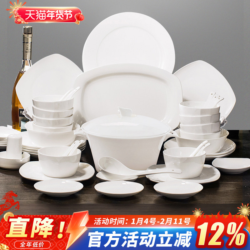 纯白骨瓷碗碟餐具套装家用新中式陶瓷吃饭碗盘子组合新婚乔迁送礼