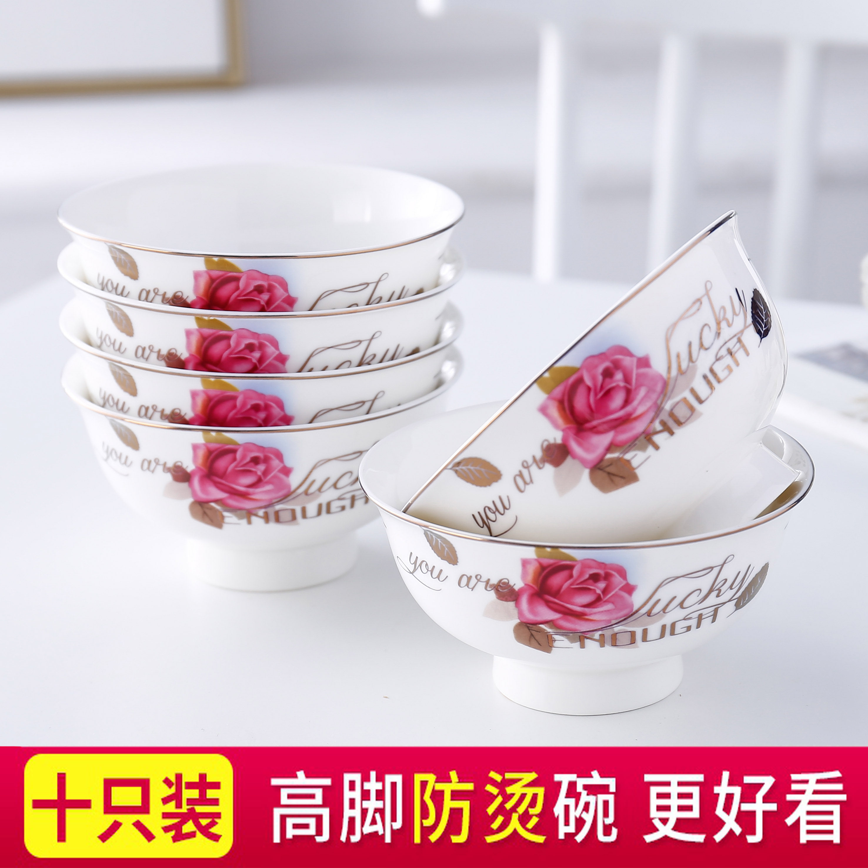 包邮10个好看的吃饭碗汤碗防烫高脚碗泡面碗骨瓷碗碟餐具套装家用