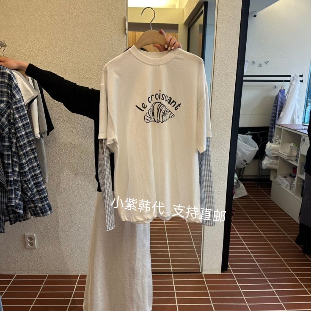 现韩国东大门代购女装CREDITO2026新款百搭宽松印花纯棉短袖T恤女