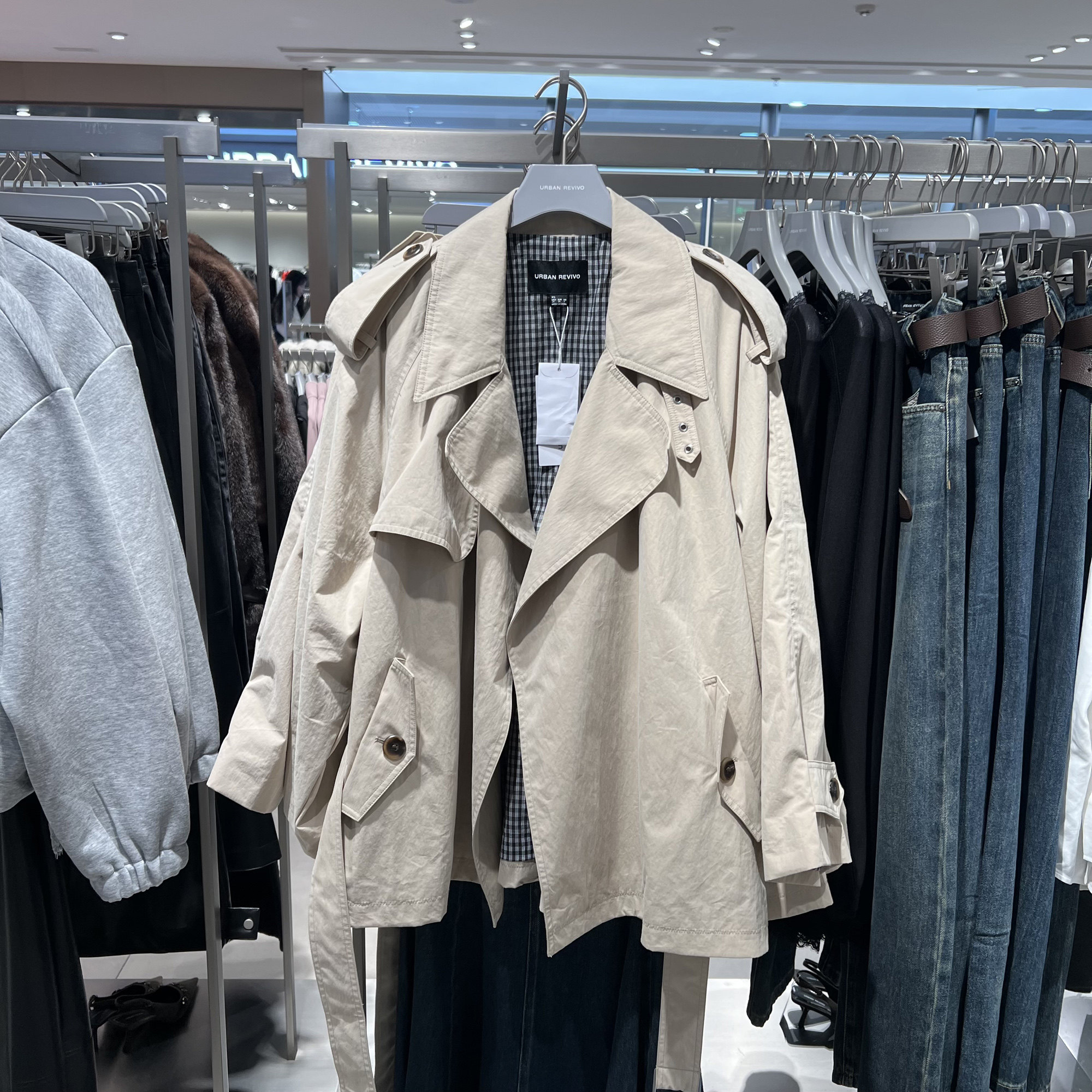 UR国内代购2026春季女装潮流复古腰带超宽松风衣外套UWJ160019