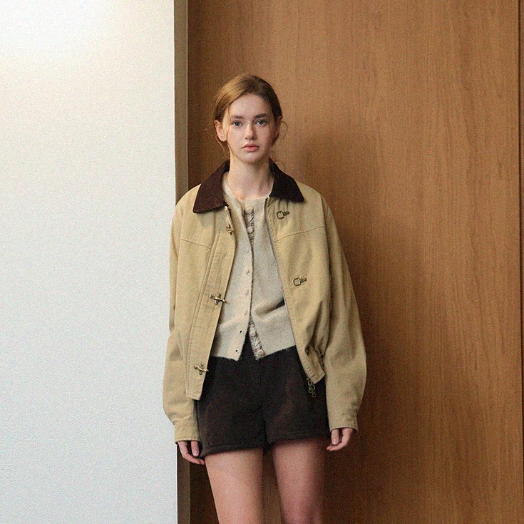 直邮 韩国代购官网女装wconcept HANE 短外套 复古拼色翻领夹克