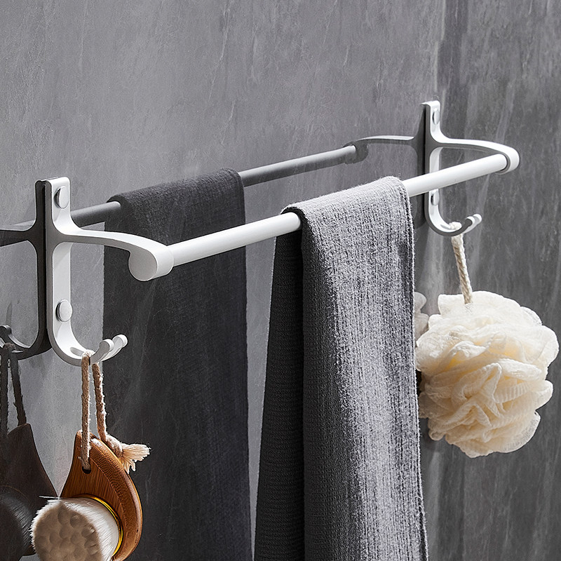 奶油风免打孔太空铝毛巾架毛巾杆单双杆卫生间挂杆浴室挂架置物架
