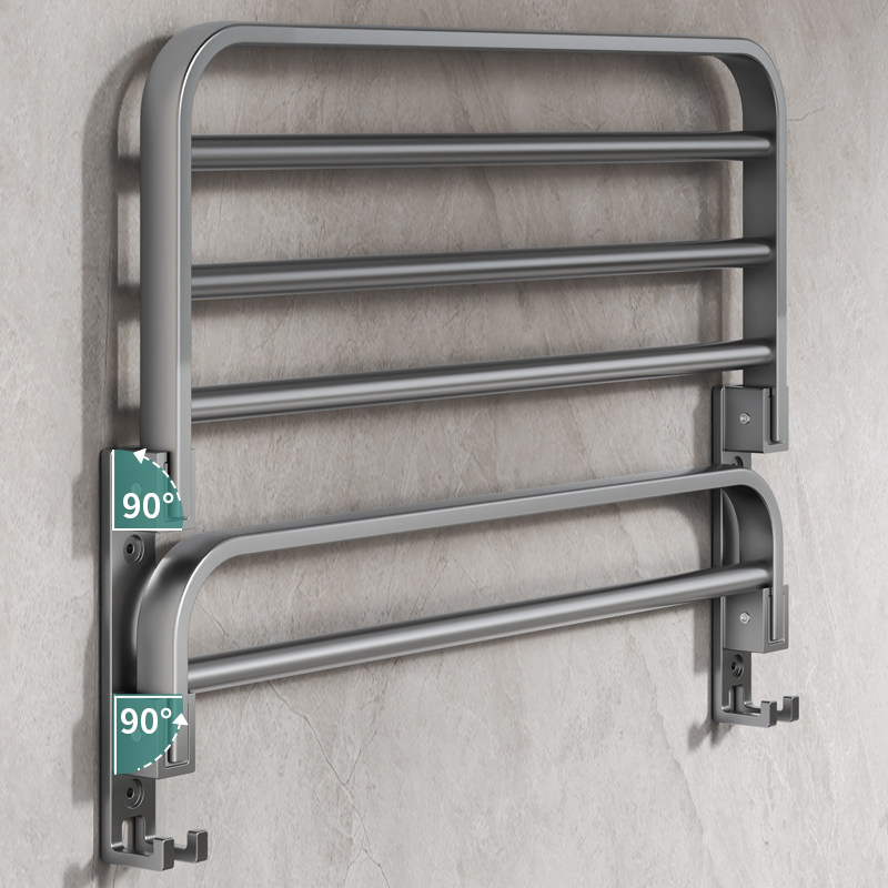 枪灰色毛巾架卫生间免打孔折叠浴室置物架壁挂式厕所太空铝浴巾架