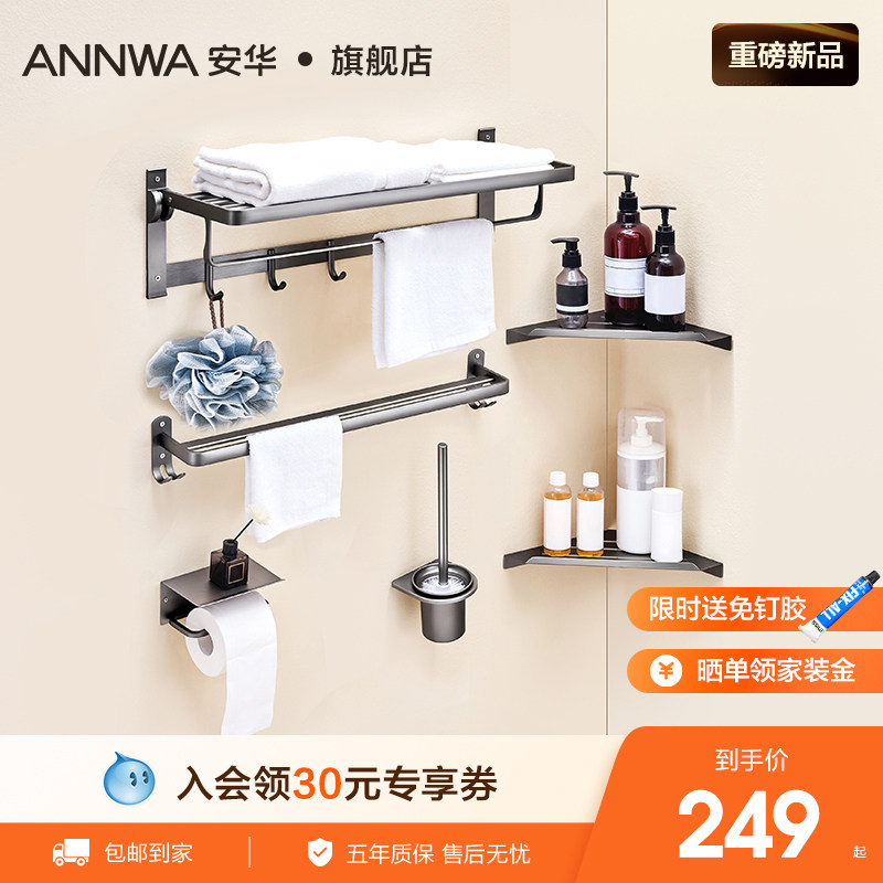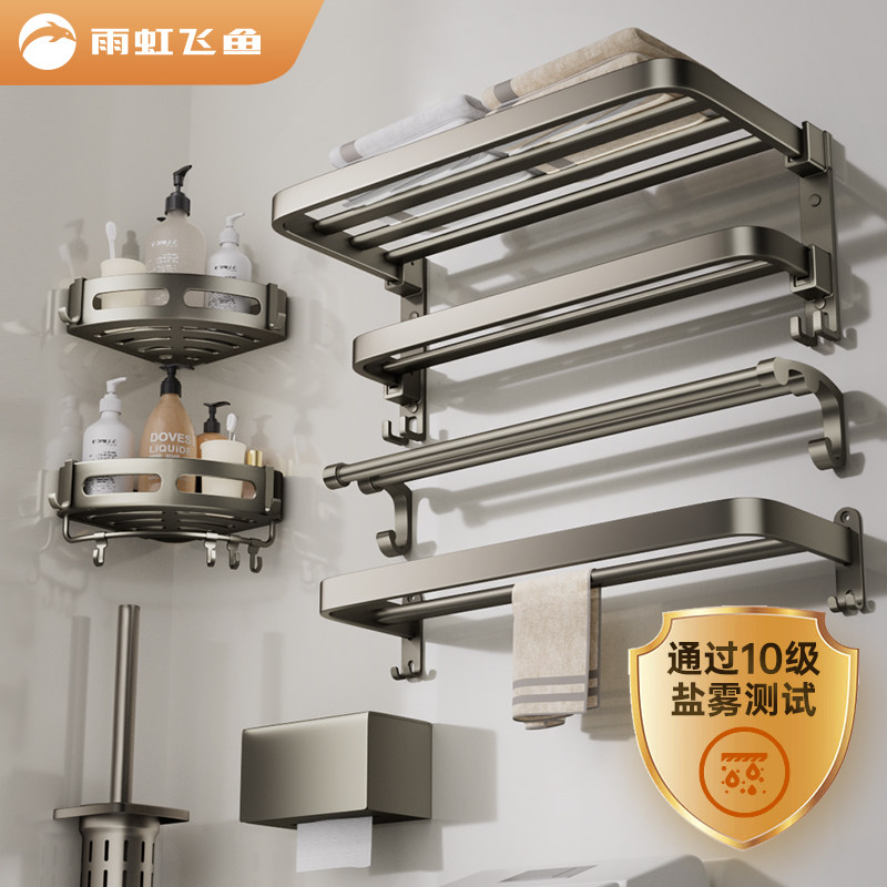 枪灰太空铝毛巾架卫生间置物架免打孔浴室架子一体挂件浴巾架收纳