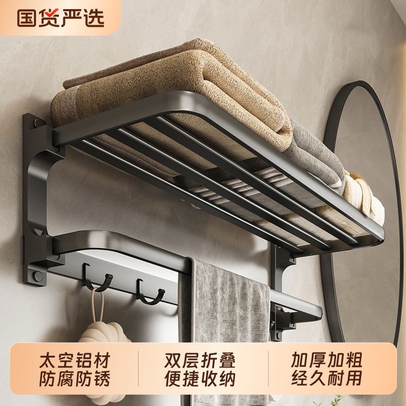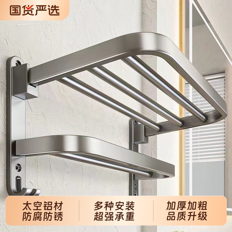 生锈包退太空铝毛巾架浴巾架免打孔卫生间浴室折叠置物架厕所壁挂