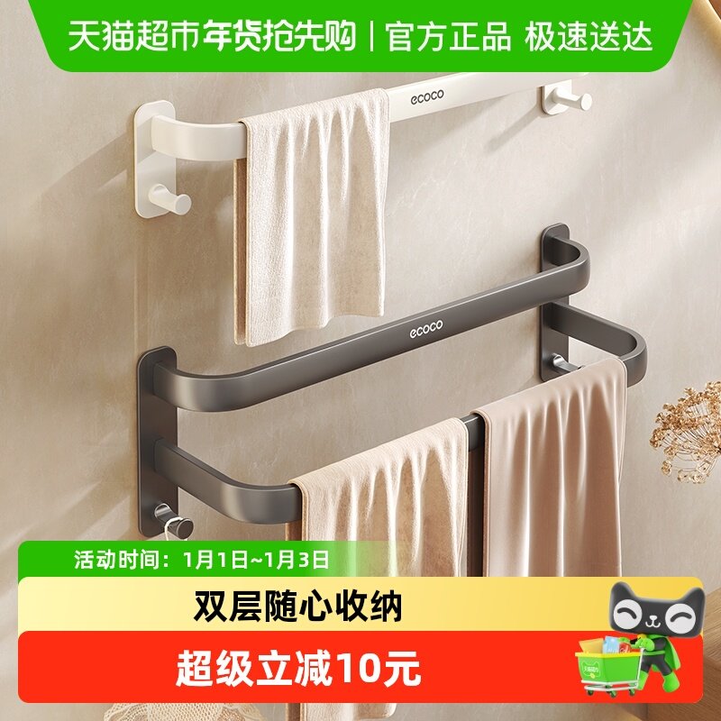 ecoco太空铝毛巾架免打孔浴室卫生间浴巾置物架单杆双杆毛巾挂架