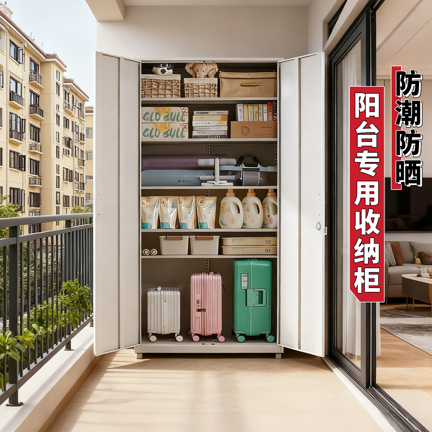 家用阳台柜防晒储物柜一体靠墙防水铁皮柜防尘杂物置物架收纳柜子
