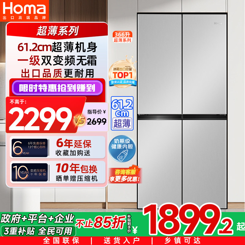 奥马冰箱家用嵌入式一级能效变频无霜双开门四开门国补电冰箱超薄