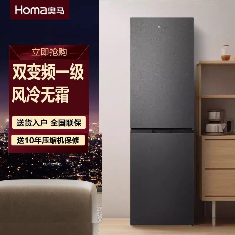 奥马249升双变频1级能效风冷无霜省电冰箱小型冷藏冷冻家用出租房
