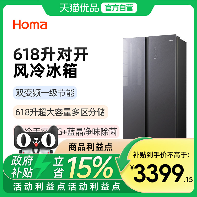 Homa/奥马 BCD-618WKQG/B晶岩灰对开双门式一级变频冷藏冷冻冰箱
