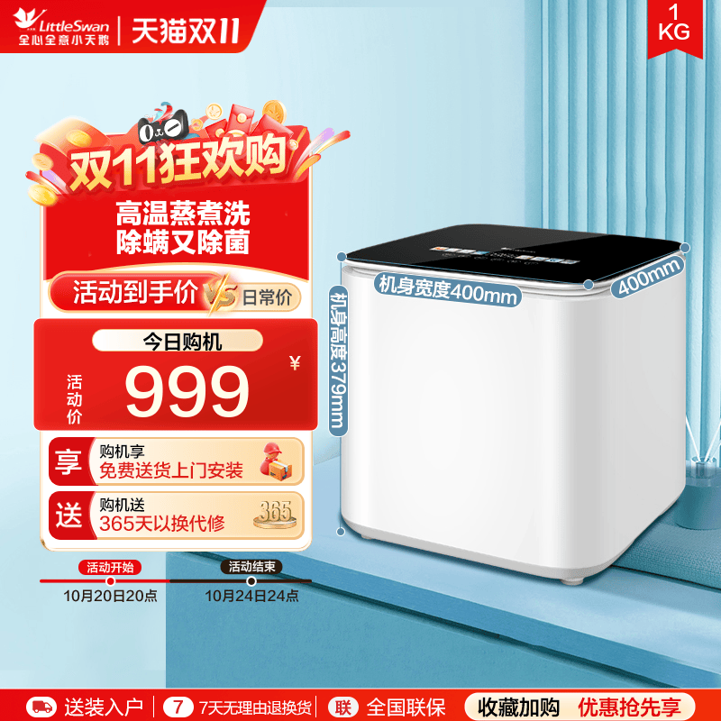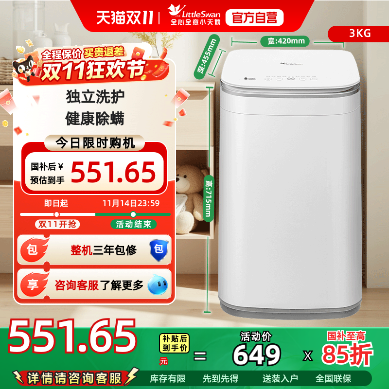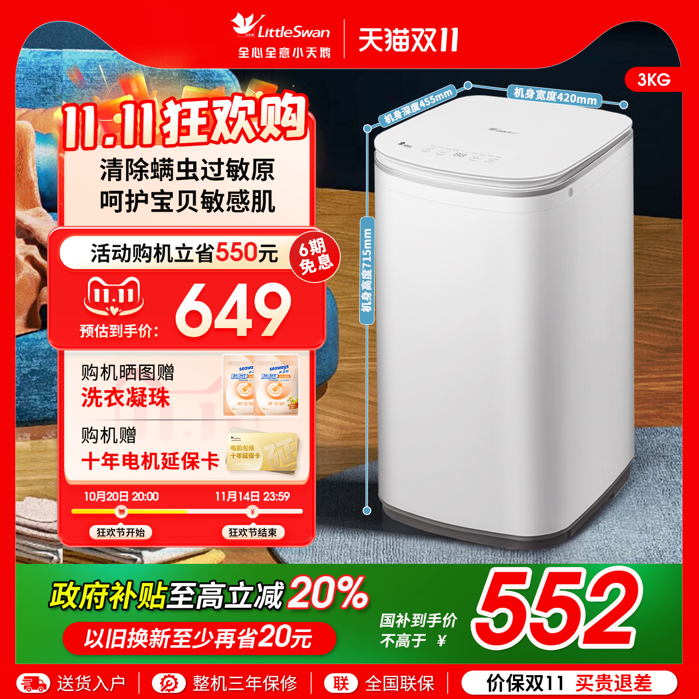 [政府补贴]小天鹅3kg迷你小型婴儿宝宝高温除螨全自动洗衣机PLUS