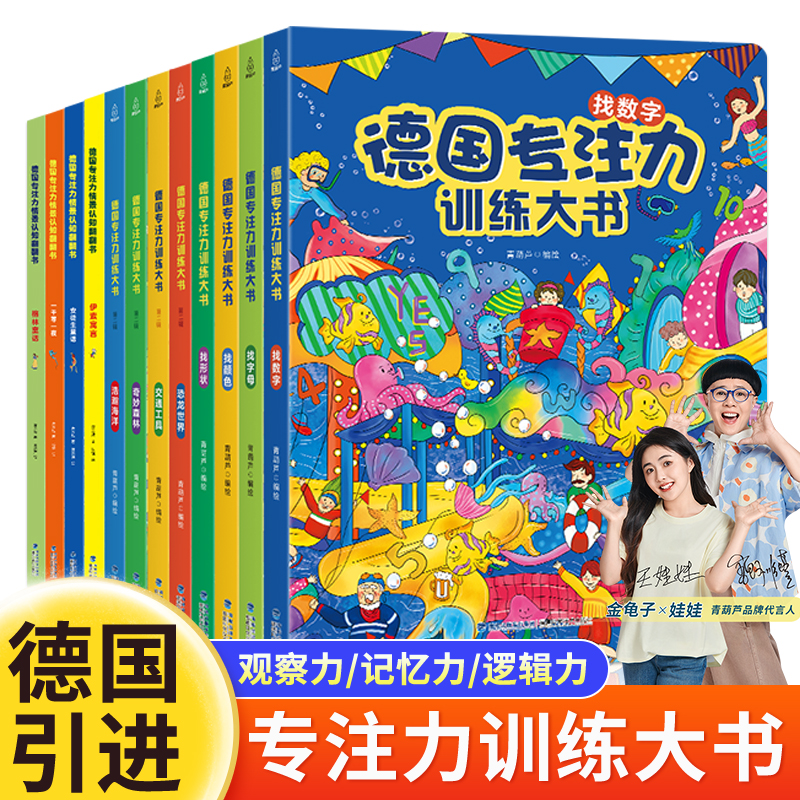 青葫芦正版 德国专注力训练大书8册 儿童绘本2-3-4-6-7岁 幼儿思维逻辑训练书益智找不同迷宫书培养孩子注意力 幼儿园硬壳纸板书