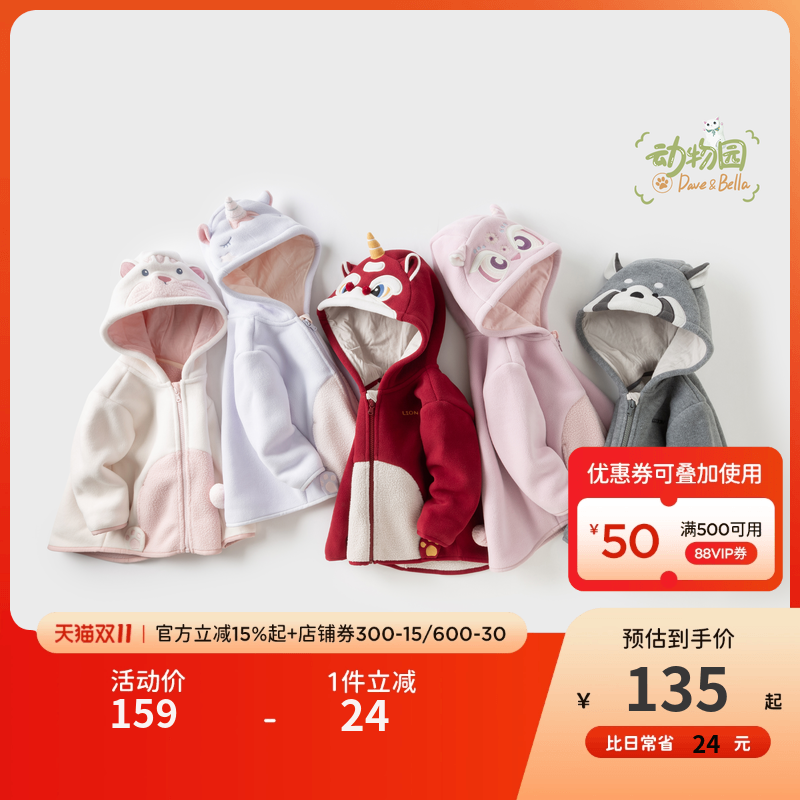 戴维贝拉儿童棉服外套冬装2025新款男童女童动物棉衣宝宝拜年服厚