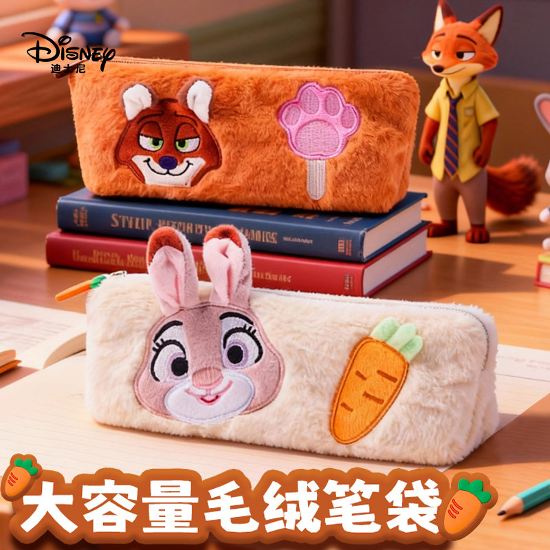 迪士尼疯狂动物城毛绒笔袋女小学生可爱铅笔收纳袋初高中女孩文具大容量2025新款文具袋女孩款高颜值铅笔笔袋