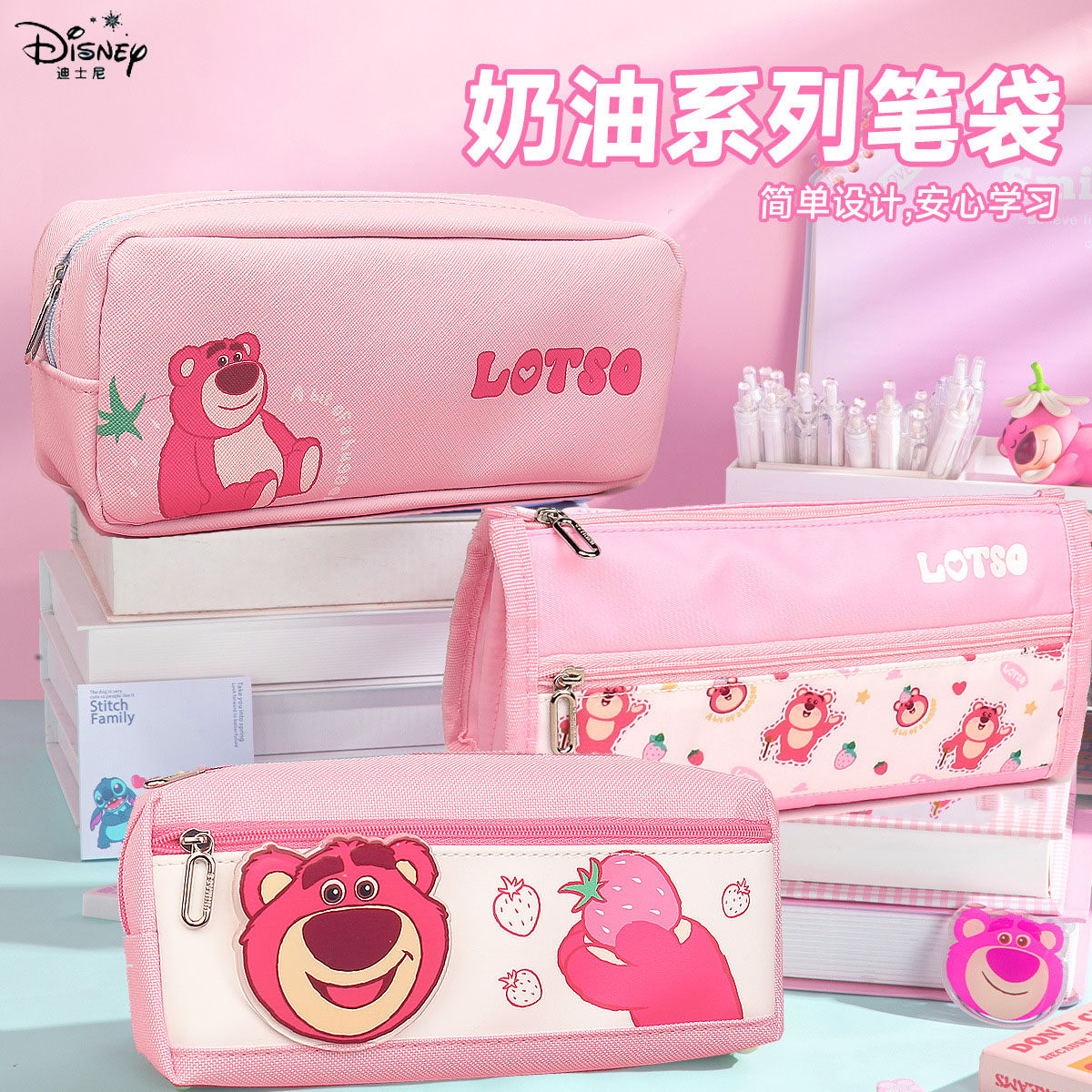 迪士尼笔袋小学生女孩款文具盒草莓熊高颜值铅笔盒初中女生大容量双层铅笔袋简约ins少女心女生文具笔盒