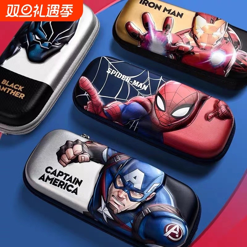 迪士尼笔袋男孩子蜘蛛侠软漫威文具盒大容量小学生儿童双层铅笔盒卡通一年级多功能幼儿园男童美国队长