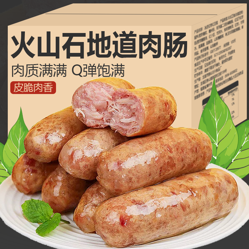 火山石烤肠肉肠地道纯脆皮香肠黑胡椒火腿肠批发烧烤空气炸锅食材